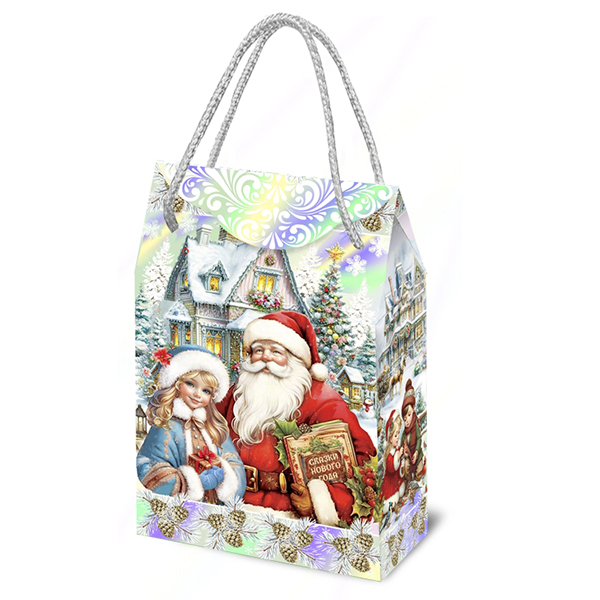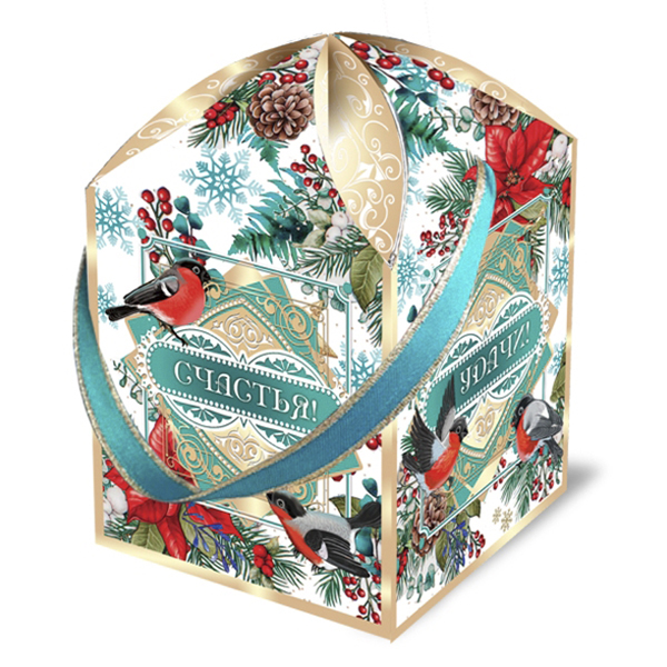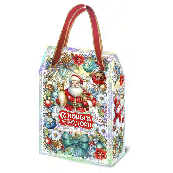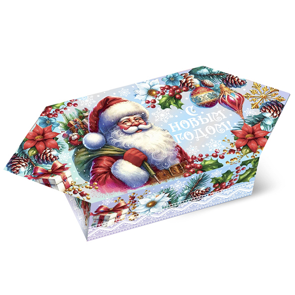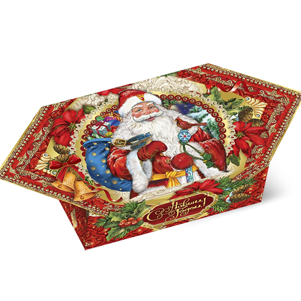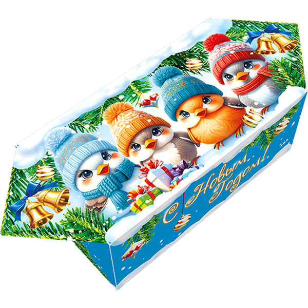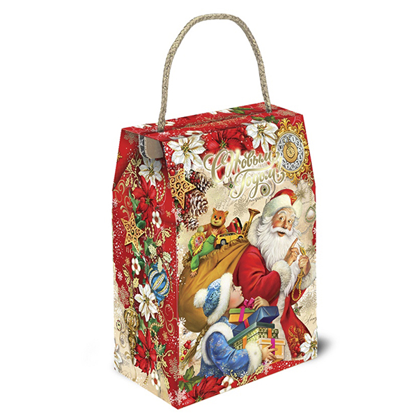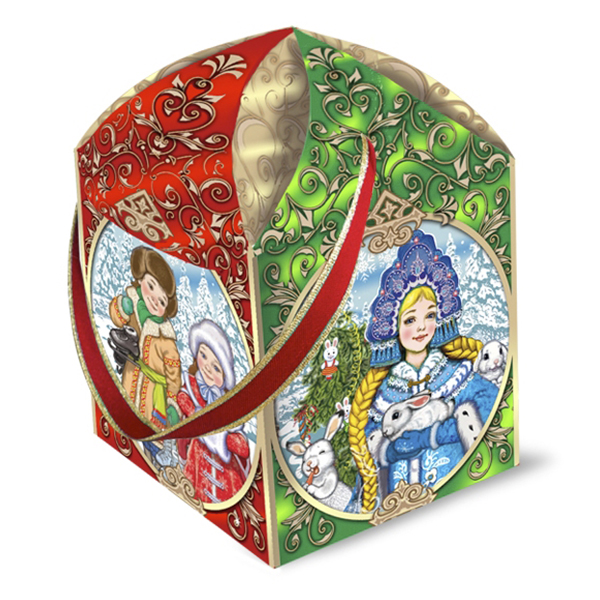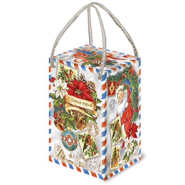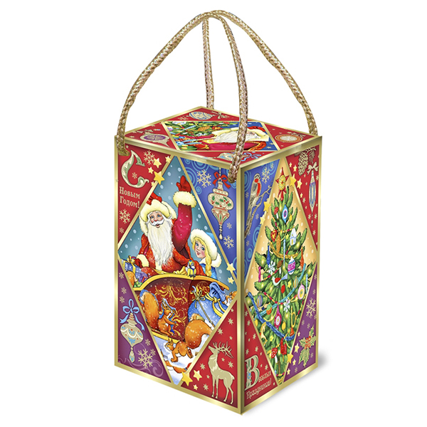 Новогодние подарки в картонной упаковке - самый доступный вариант для покупателей. Тем не менее, конфеты в таком подарке по качеству не отличаются от конфет в более дорогих подарках.