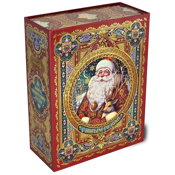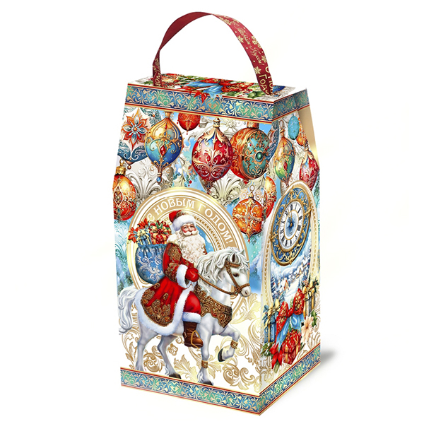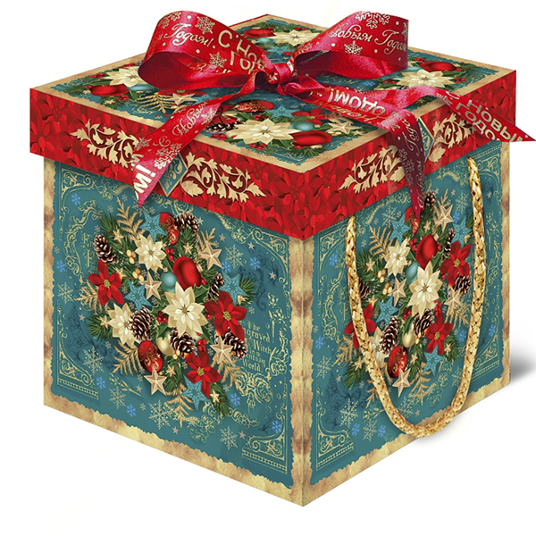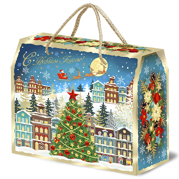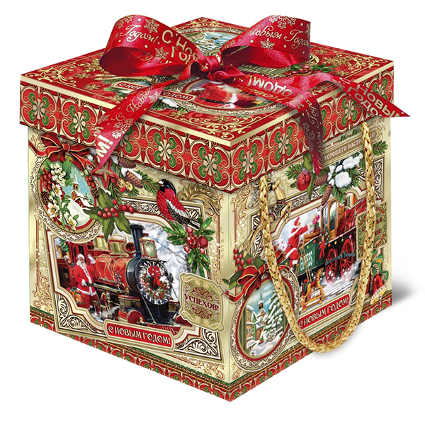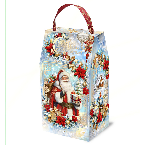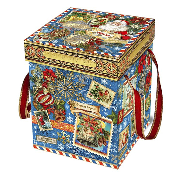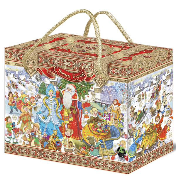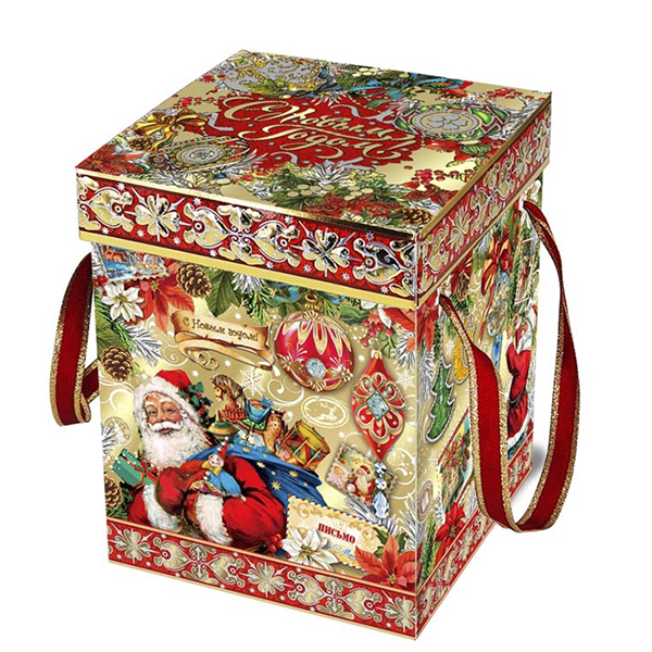 Новогодние подарки в картонной упаковке - самый доступный вариант для покупателей. Тем не менее, конфеты в таком подарке по качеству не отличаются от конфет в более дорогих подарках.