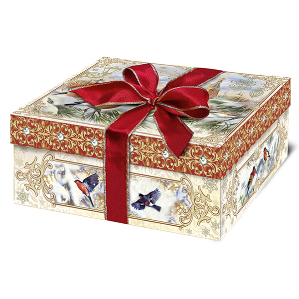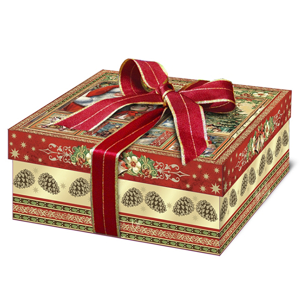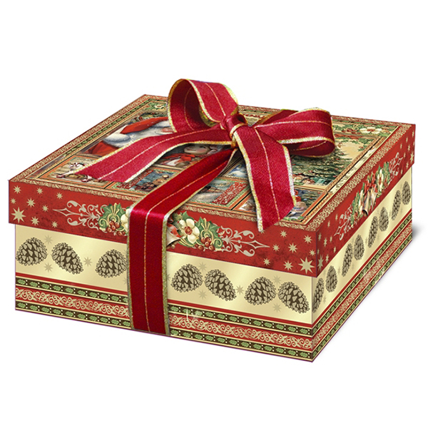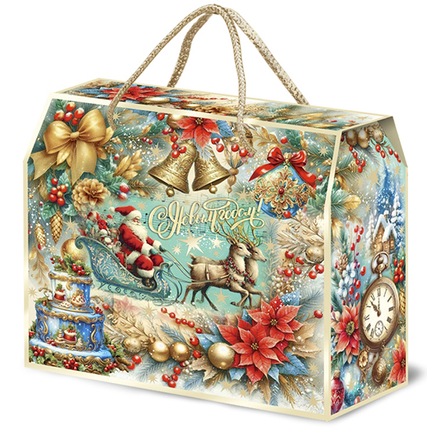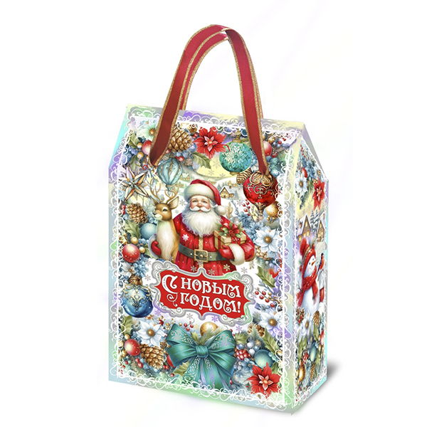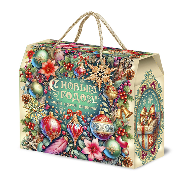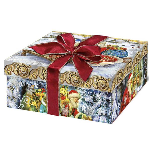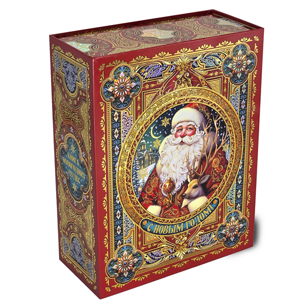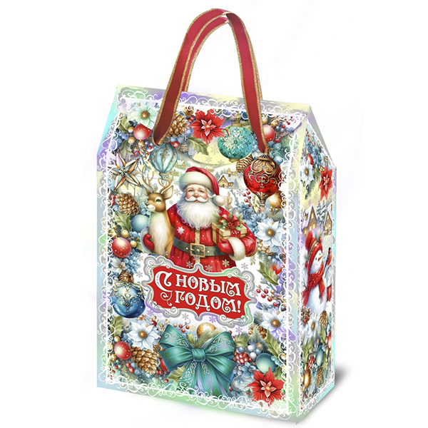 Новогодние подарки в картонной упаковке - самый доступный вариант для покупателей. Тем не менее, конфеты в таком подарке по качеству не отличаются от конфет в более дорогих подарках.