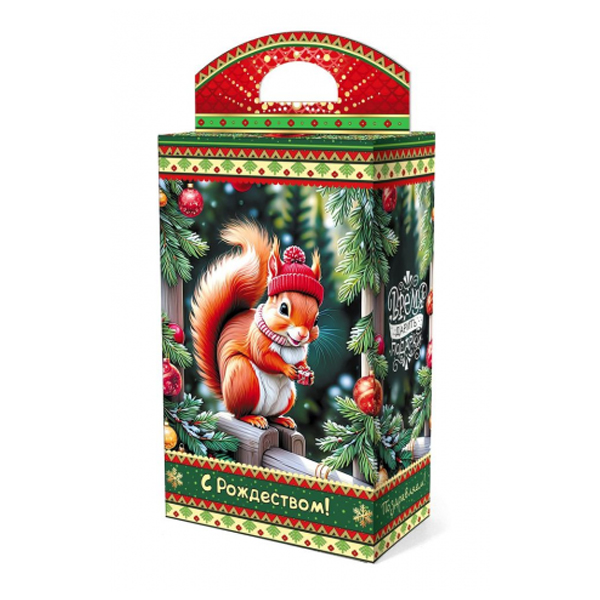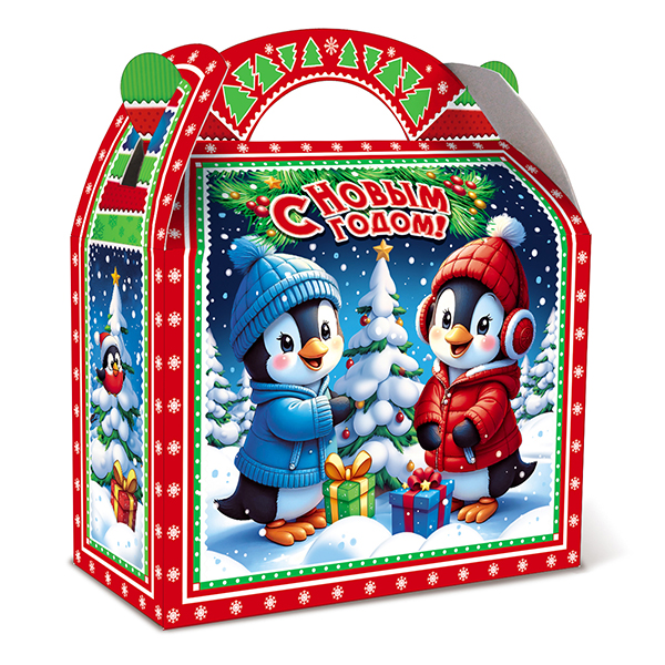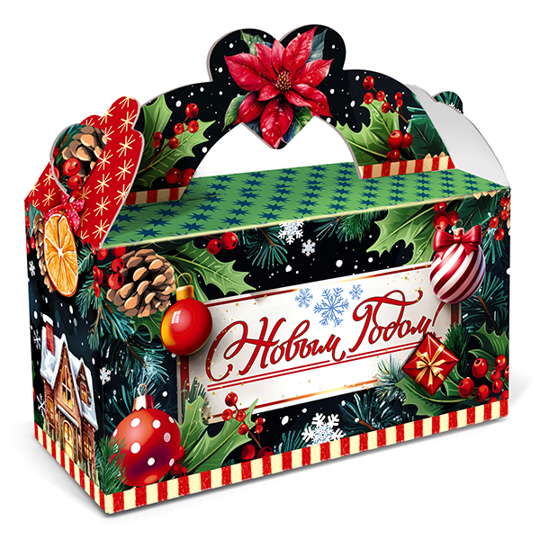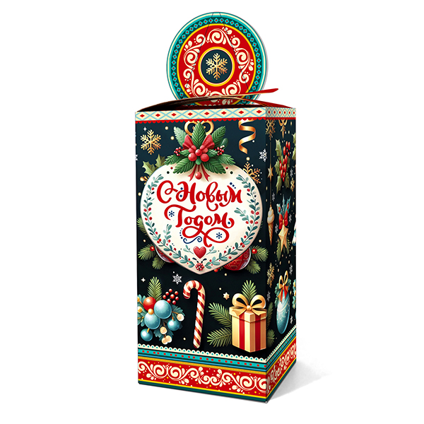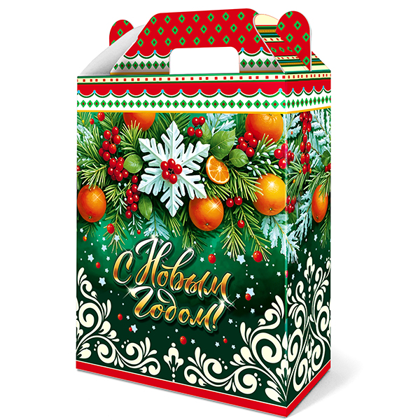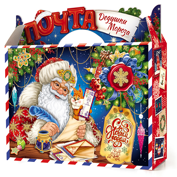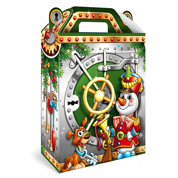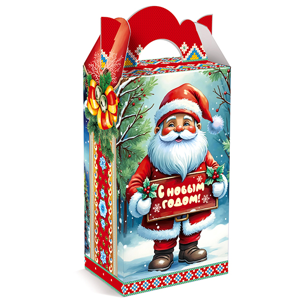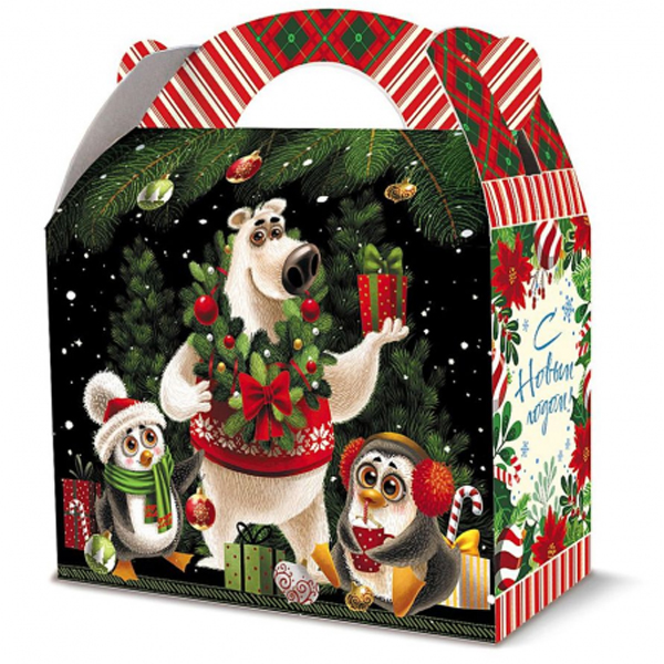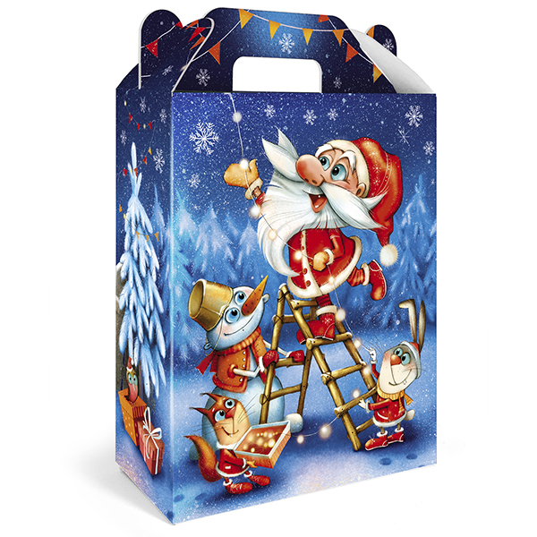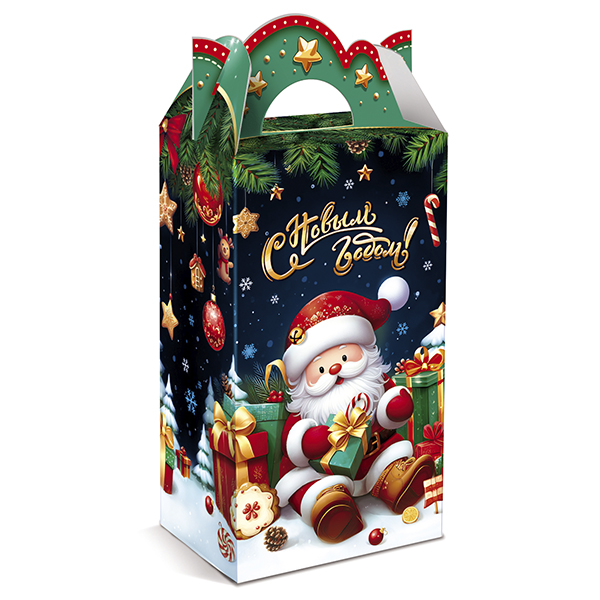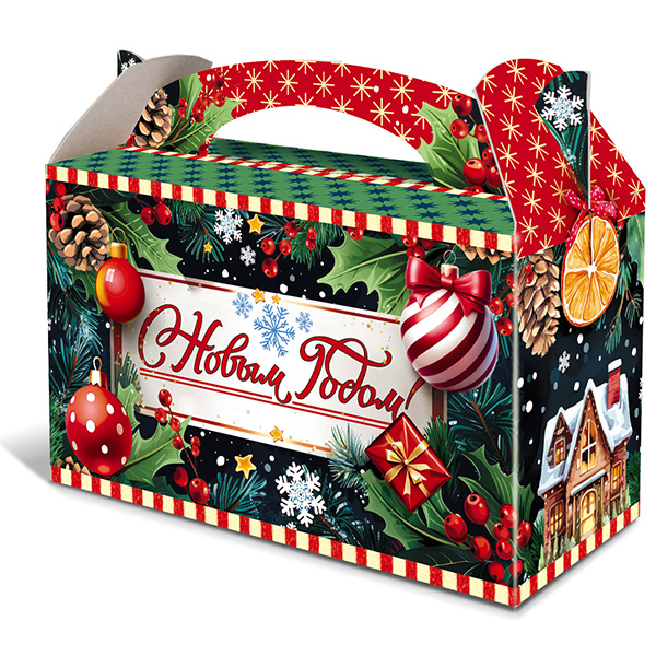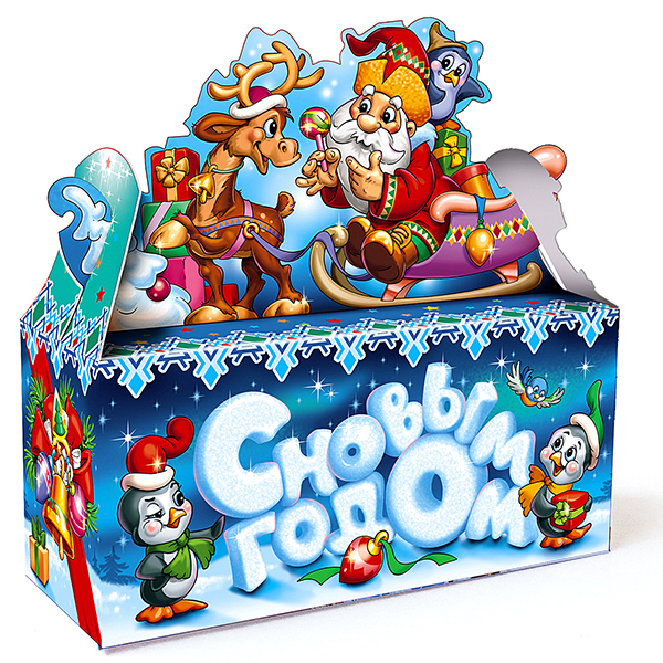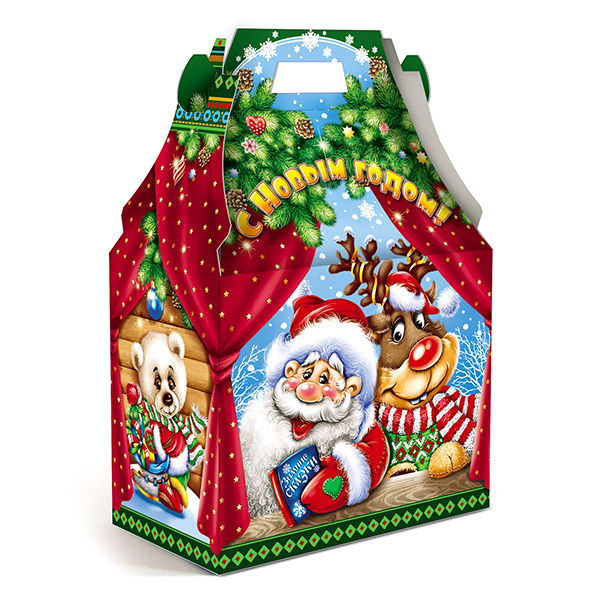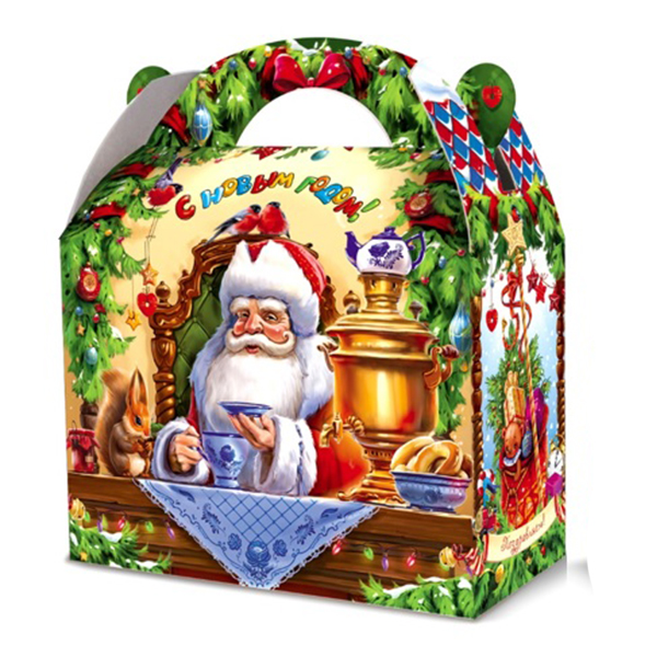 Новогодние подарки в картонной упаковке - самый доступный вариант для покупателей. Тем не менее, конфеты в таком подарке по качеству не отличаются от конфет в более дорогих подарках.