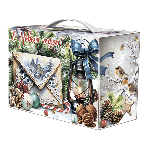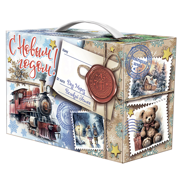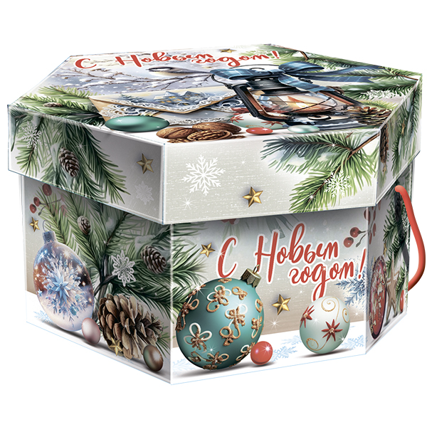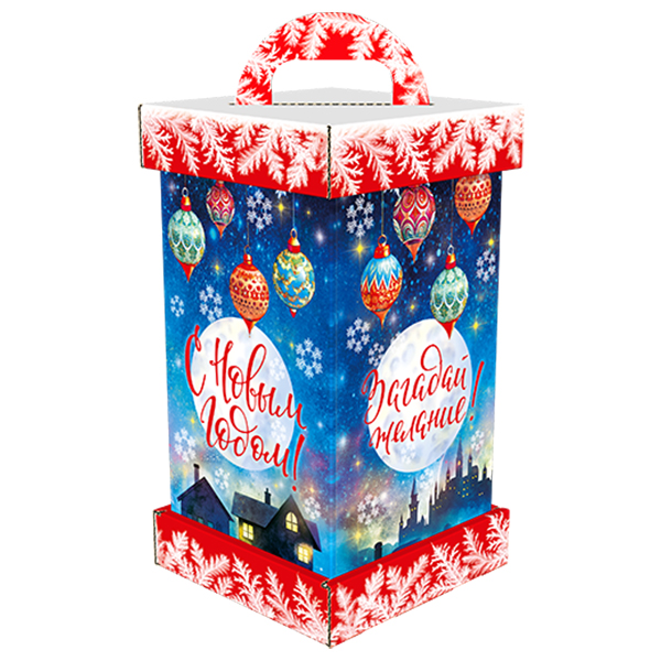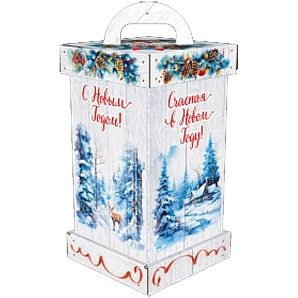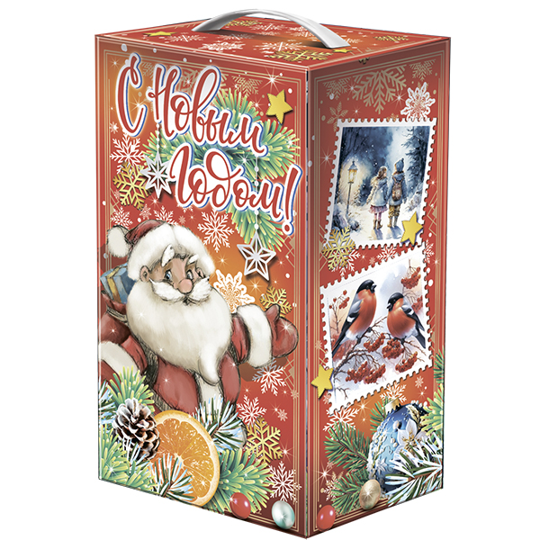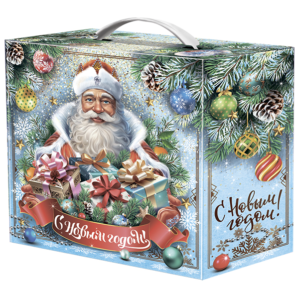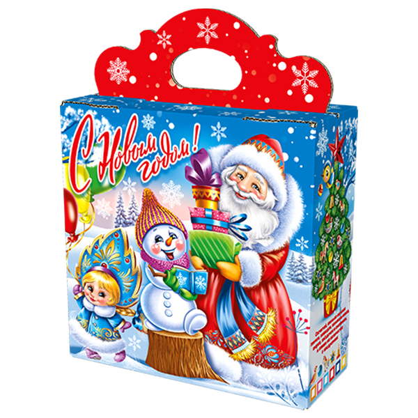 Новогодние подарки в картонной упаковке - самый доступный вариант для покупателей. Тем не менее, конфеты в таком подарке по качеству не отличаются от конфет в более дорогих подарках.