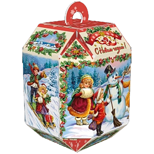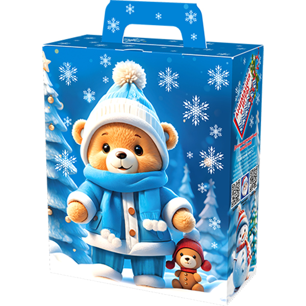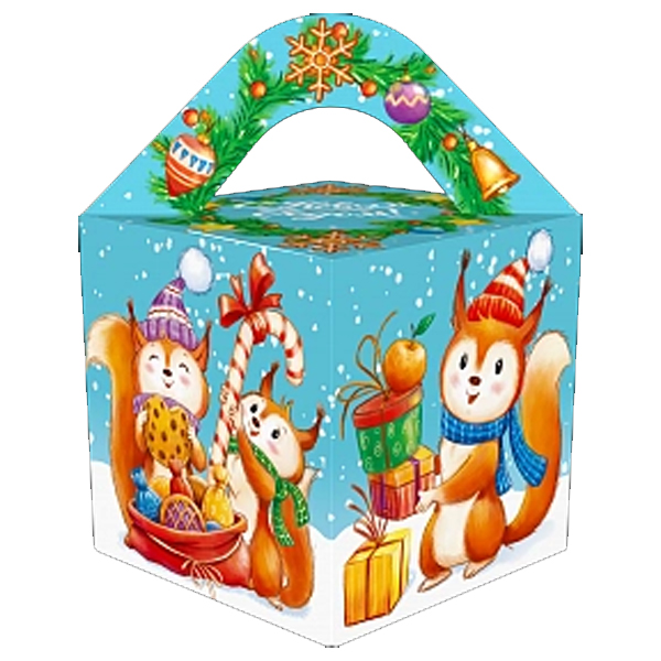 Новогодние подарки в картонной упаковке - самый доступный вариант для покупателей. Тем не менее, конфеты в таком подарке по качеству не отличаются от конфет в более дорогих подарках.