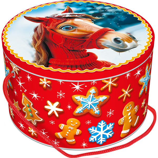 Новогодние подарки в жестяной упаковке всегда превосходно выглядят и дарят детям настоящее праздничное настроение. Подарки отличаются видом упаковки,  формой и различными иллюстрациями на Новогодние темы. В каждом подарке Вы найдете свежие и вкусные конфеты, шоколад и вкусную карамель.