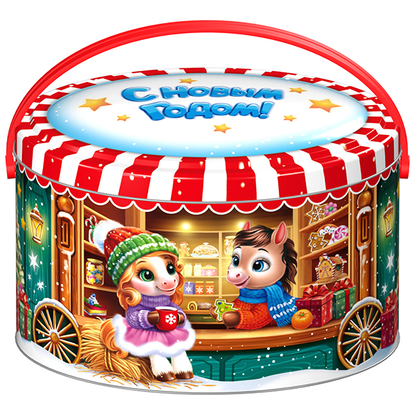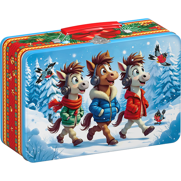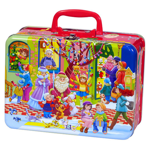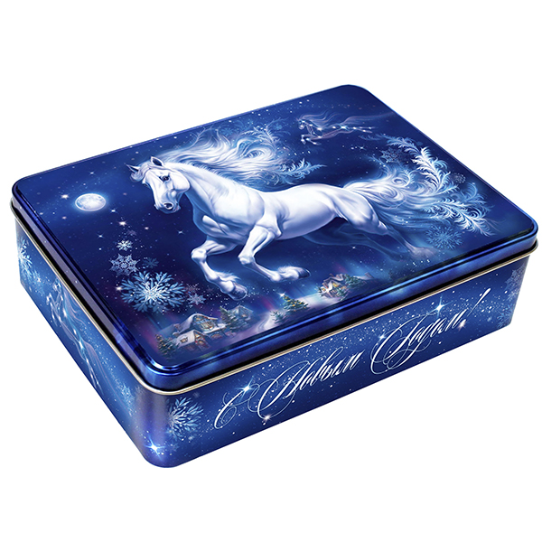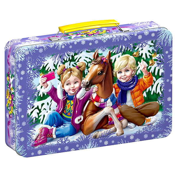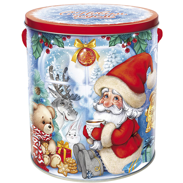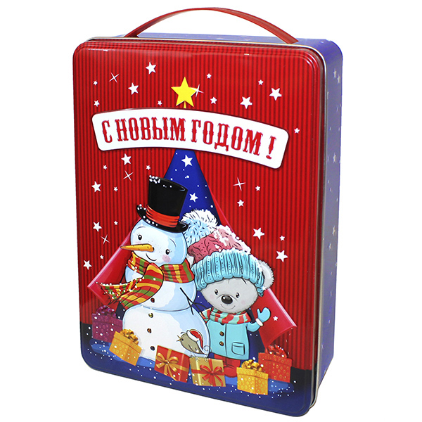 Новогодние подарки в жестяной упаковке всегда превосходно выглядят и дарят детям настоящее праздничное настроение. Подарки отличаются видом упаковки, формой и различными иллюстрациями на Новогодние темы. В каждом подарке Вы найдете свежие и вкусные конфеты, шоколад и вкусную карамель.